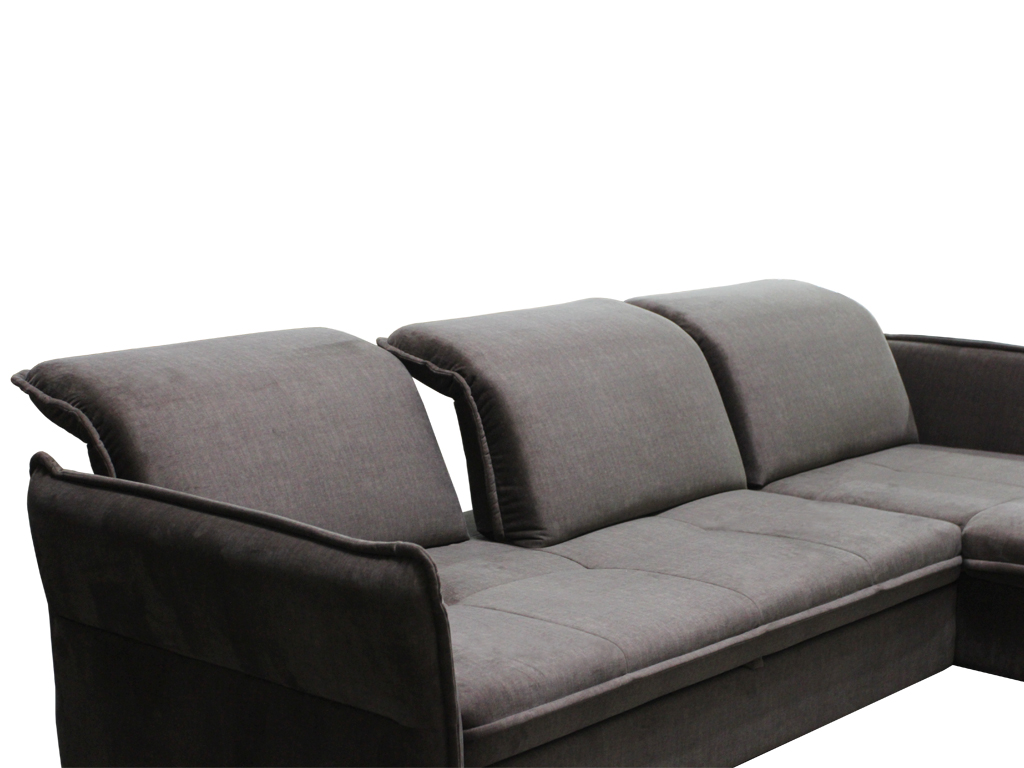 | Особенности | — шагающий механизм спинки, — механизм трансформации подголовника, — возможность переставить местами элементы – из дивана с правым углом сделать диван с левым, и наоборот ** |