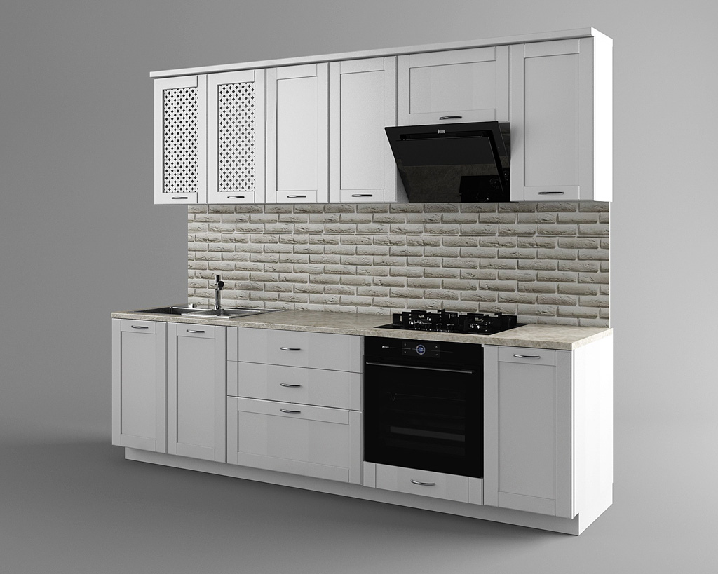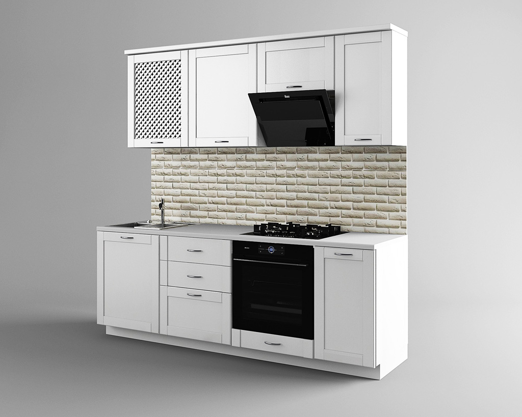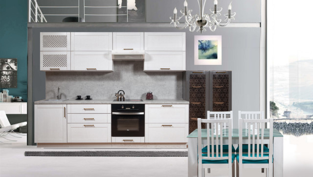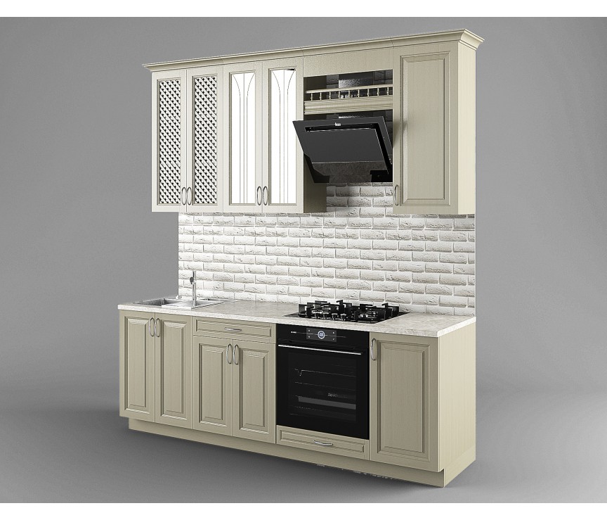 Модульная программа для кухни «Софья» выполнена в стиле современной классики. В её дизайне традиционные элементы декора переплетаются с современными решениями. Прямые четкие линии, широкие модули, достаточно простые фасады, декоративные полки придают кухне больше выразительности. Завершают образ элегантные оттенки крашения фасадов (от насыщенных тёмных до молочных и белоснежных).
