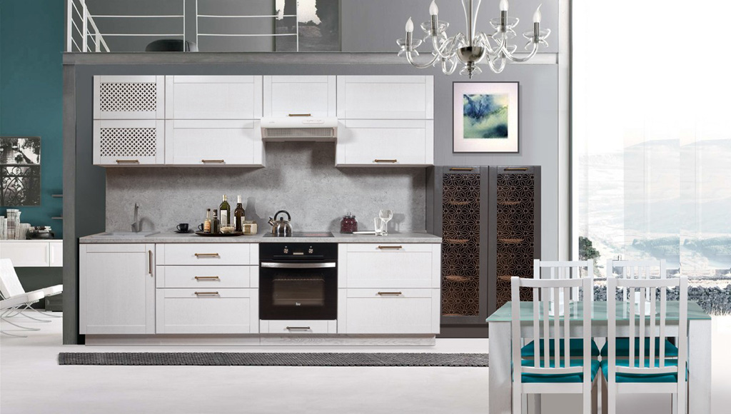 • строгие лаконичные фасады выполнены из массива дуба со шпонированной вставкой;