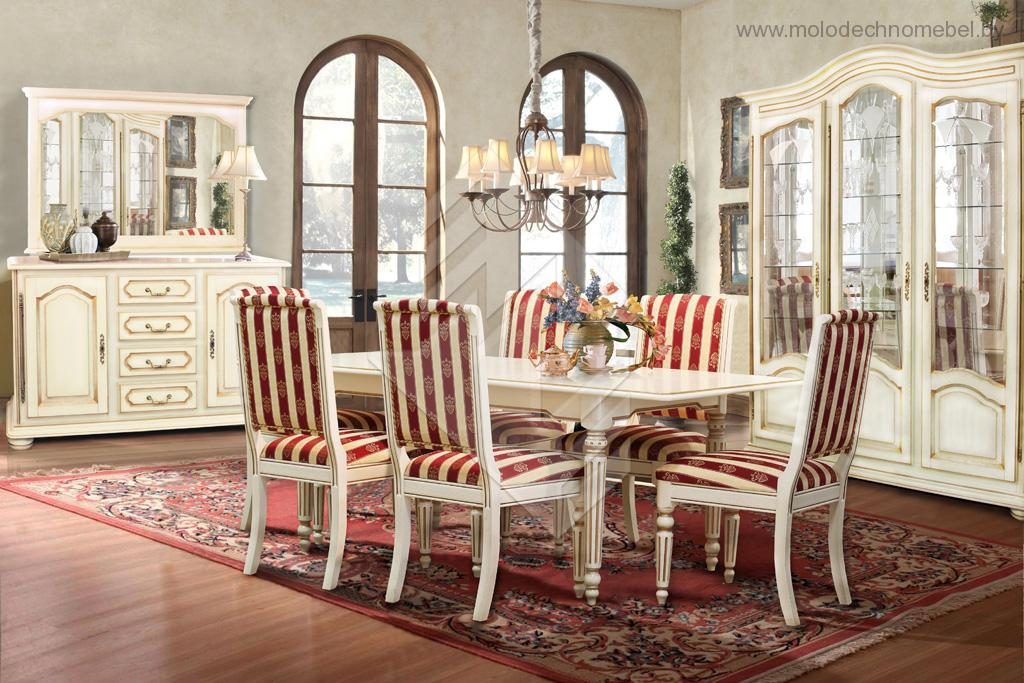 Отделка: варианты цвета «Медовый дуб + з.п.», «Белая эмаль», «Белая эмаль с золотой патиной», лак – на водной основе.
