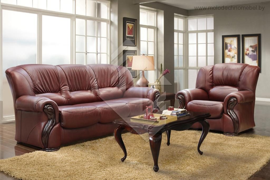 Набор отличается своеобразием форм, повышенной комфортабельностью и эстетичностью. Облицовка тканью или кожей натуральной (импортной). Наличие декоративных пиковок, швов и искусственно созданных складок, профильного бруска из массива древесины на боковине придают набору художественную завершённость.
