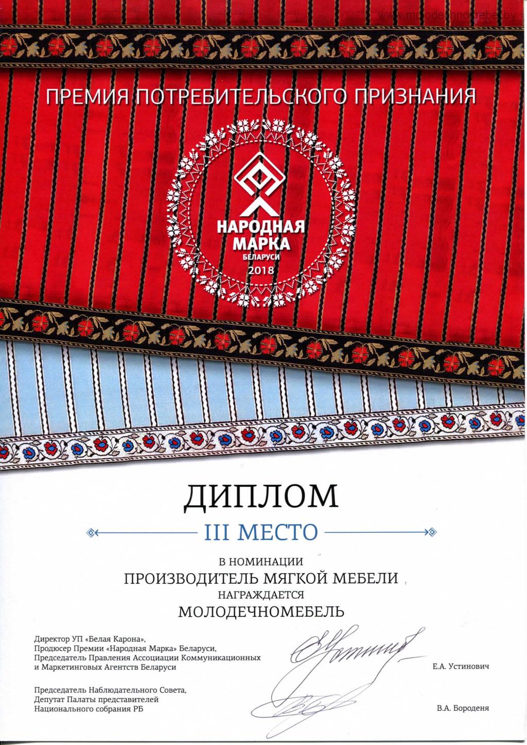 По результатам народного голосования ЗАО «Молодечномебель» стало призером в двух номинациях: «Производитель мягкой мебели» и «Производитель корпусной мебели».