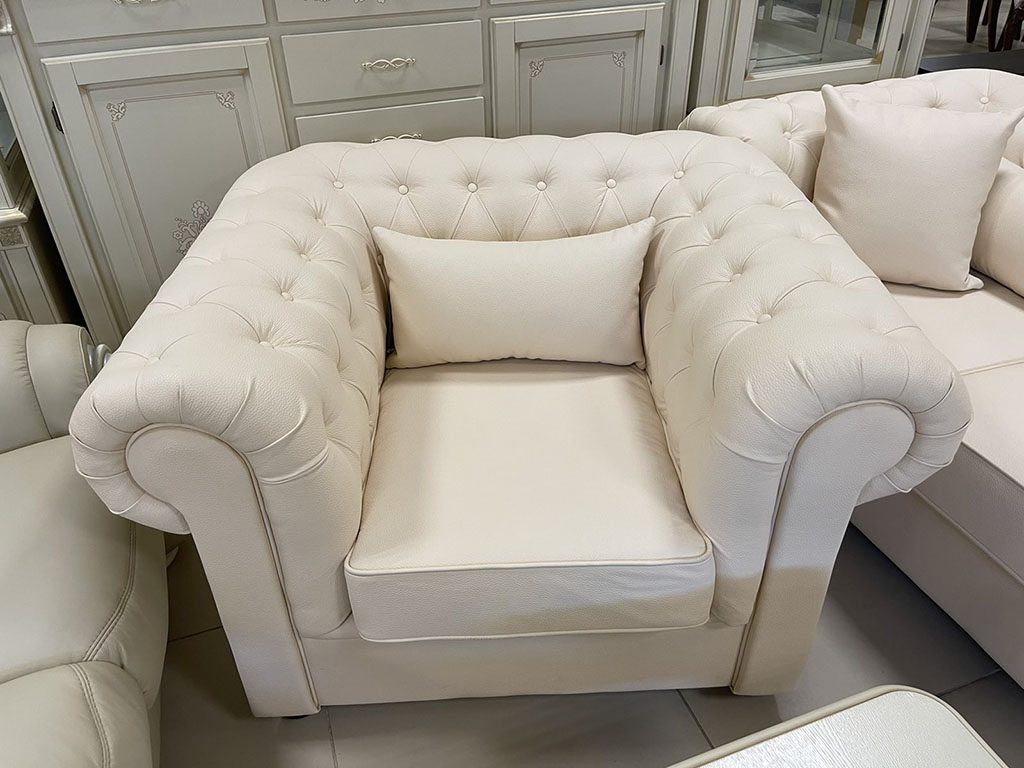 Интерьер квартиры в этом стиле обязательно включает подобный диван. Несмотря на то, что его придумали в 18 веке, выглядит он всё так же современно, роскошно и модно. Диван может быть выполнен в различных интерпретациях: от кожи цвета темного шоколада до обивки из мягкого плюша в различной цветовой гамме. Часто именно этот диван становится самым ярким акцентом гостиной.
